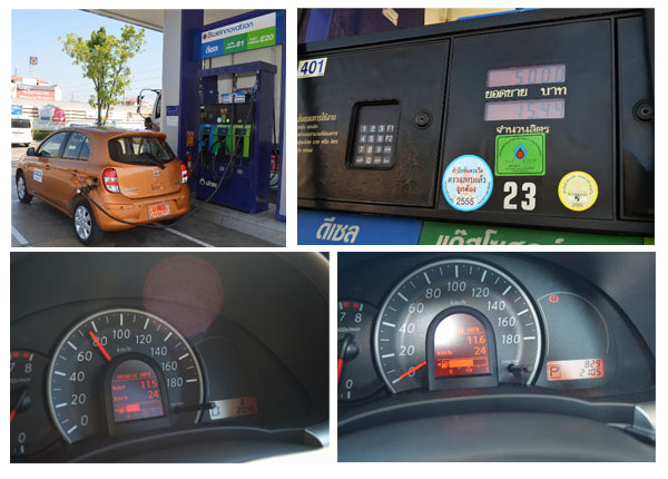 ก่อนเติมน้ำมันE20 หลังเติม 500 บาท/15.44 ลิตร หลังทดสอบเสร็จ