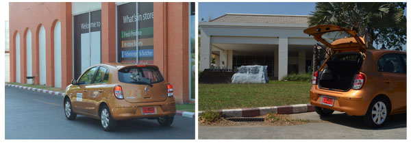เมื่อวันที่ 18 มกราคม 2556 ทีมงาน Thai Product Review และ Checkraka.com ได้รับความอนุเคราะห์จากบริษัท ไทยยานยนตร์ จำกัด ผู้แทนจำหน่ายรถยนต์นิสสันอย่างเป็นทางการภายใต้ชื่อ TSS-NS NISSAN official dealer สาขาคลองตัน ให้รับนิสสัน มาร์ช มาทดสอบ โดยเป็นรุ่นท็อปคือ VL-CVT แต่ไม่ใช่รุ่น Sport version เริ่มทดสอบจากศูนย์ TSS-NS คลองตัน ผ่านแยกพระราม 9 รามคำแหง เลี้ยวขวามุ่งสู่ถนนมอเตอร์เวย์ แล้วเข้าถนนร่มเกล้า-ลาดกระบัง เพื่อเชื่อมกับถนนสุวินทวงค์ และตรงเข้าถนนรามอินทราลัดถนนสวนสยามเข้าถนนสุขาภิบาล 1 และลัดไปออกถนนสุขาภิบาล 3 รามคำแหง และตรงข้ามสะพานรามคำแหงมุ่งหน้าคลองตันกลับศูนย์นิสสัน รวมระยะทางทั้งหมด 72.1 กม.