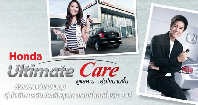 ซึ่งโปรแกรม "ฮอนด้า อัลติเมท แคร์" นี้ยังให้บริการช่วยเหลือรถเสียฉุกเฉินเบื้องต้น ณ จุดเกิดเหตุ ตลอด 24 ชั่วโมง พร้อมบริการลากรถไปยังศูนย์ฮอนด้าที่ใกล้ที่สุดแบบไม่จำกัดจำนวนครั้ง และไม่จำกัดระยะทางโดยไม่คิดค่าบริการในระยะทาง 20 กม.แรก โดยส่วนที่เกิน 20 กม.ก็จะคิดค่าบริการเพียง กม.ละ 25 บาท