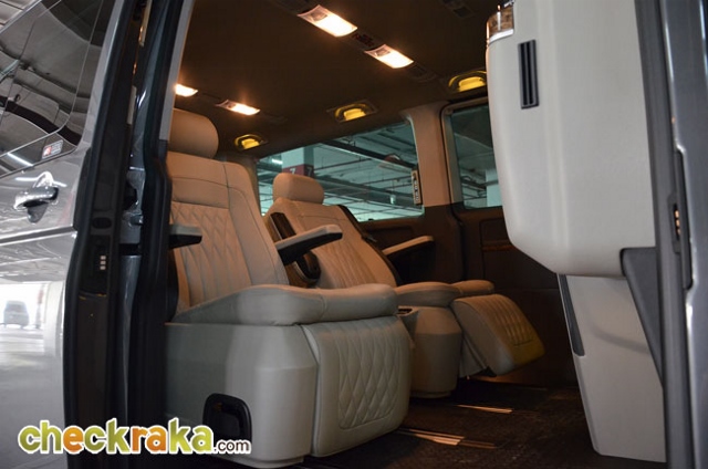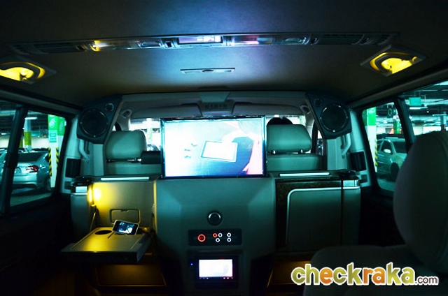 ภายในคอนโซลหน้าและกลางตกแต่งลายไม้ แผงหน้าปัดแบบเข็มอ่านง่าย จอแสดงผลมัลติฟังก์ชั่น พวงมาลัยมัลติฟังก์ชั่นปรับได้ 4 ทิศทาง ไฟหน้าเปิด/ปิดอัตโนมัติ Cruise control กระจกมองหลังตัดแสงอัตโนมัติ เครื่องเสียงตอนหน้าจอสัมผัสแบบ 2 DIN พร้อมจอมองภาพขณะถอยหลัง เครื่องเสียงตอนหลังจอสัมผัสแบบ 2 DIN, CD, DVD, TV 22 นิ้ว Digital, HDMI Function, GPS, Bluetooth, USB, Karaoke ลำโพง 8 จุด และแอมป์พลิฟายเออร์จาก Focal