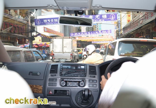 เมื่อเริ่มเหยียบคันเร่งขณะออกตัวอย่างเบาๆ แทบไม่มีอาการกระชาก การต่อเกียร์ราบรื่นคล้ายเกียร์ธรรมดา อาจมีความรู้สึกช่วงเปลี่ยนจังหวะบ้างเล็กน้อย เนื่องจากเป็นระบบคลัตช์แห้งที่คล้ายคลัตช์ในรถเกียร์ธรรมดา แต่จังหวะการเปลี่ยนเกียร์จะนุ่มกว่า สิ่งที่รู้สึกเกินคาด คือ เหมือนขับรถเก๋งทั่วไป เพราะทุกอย่างเบาสบาย ทั้งน้ำหนักที่ต้องกดลงบนคันเร่งหรือเบรก น้ำหนักของพวงมาลัยที่เบาในความเร็วต่ำ ช่วงแรกผ่านการจราจรในเมืองที่ถึงขั้นวิกฤติตรงถนนเยาวราช-พาหุรัด-ผ่านถนนมหาไชยและมีช่องทางที่แคบพอสมควร แต่ The new Caravelle กลับคล่องตัวมาก ตัวรถที่กว้างไม่เป็นอุปสรรคเลยในที่แคบ ถึงแม้ตัวรถจะมีความยาว แต่ด้วยระยะ Overhang ส่วนท้ายจากล้อหลังที่สั้นจึงทำให้คล่องตัว มุมมองรอบๆ รถก็สามารถกะระยะได้ง่าย