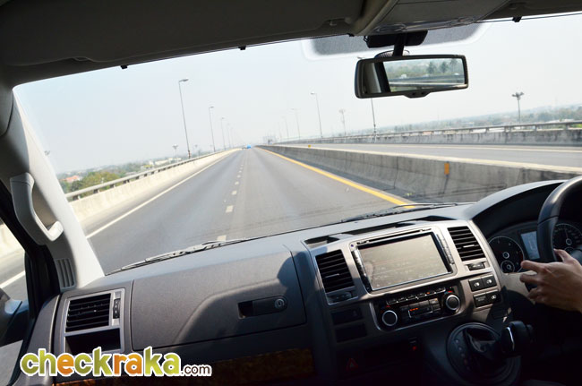 180 แรงม้า พาน้ำหนัก 2 ตันกว่าวิ่งฉลุย ช่วงขาไปได้เป็นผู้ขับเพื่อทดสอบสมรรถนะเครื่องยนต์ดีเซล 2.0 ลิตร ไบเทอร์โบ 180 แรงม้า เกียร์ DSG 7 จังหวะ กับน้ำหนักกว่า 2 ตัน ซึ่งสามารถตอบสนองได้ดีเยี่ยม เหมือนไม่ได้ขับรถตู้ และช่วงเร่งแซงจาก 60-100 กม./ชม. ใช้เวลาสั้นๆ และบางครั้งไต่ความเร็วจาก 80-140 กม./ชม. ได้ง่ายดาย กำลังของเครื่องยนต์เริ่มมาตั้งแต่ช่วง 1,500 รอบ/นาที และเปลี่ยนจังหวะเกียร์รวดเร็วมาก ส่งกำลังได้ต่อเนื่อง ความเร็วสูงสุดจากโรงงาน 191 กม./ชม. แต่เนื่องจากการจราจรที่หนาแน่น และเพื่อความปลอดภัยจึงใช้ความเร็วช่วงถนนโล่งเฉลี่ยประมาณ 80-120 กม./ชม. เท่านั้น ส่วนระบบเบรกที่ตอบสนองได้ดี นุ่มเท้าและน้ำหนักเบาแม้ต้องเบรกอย่างกะทันหันใช้แรงเหยียบไม่มากก็สามารถหยุดได้มั่นใจ