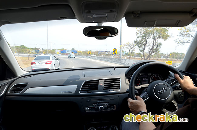 แม้ Audi Q3 จะดูเป็นรถไซส์ใหญ่ แต่เมื่อได้ลองขับกลับให้ความรู้สึกไม่แตกต่างจากรถยนต์แฮตช์แบ็กทั่วไป ความสูงของรถก็ไม่ทำให้โคลงเคลงแม้ที่ความเร็วสูง กลับยิ่งมั่นใจกว่าขับรถแบบความสูงระดับปกติ เพราะถนนที่บางครั้งมีหลุม หรือเนินที่สูงไม่สามารถหลีกเลี่ยงได้ แต่ออดี้ คิว 3 ขับผ่านไปอย่างง่ายดาย