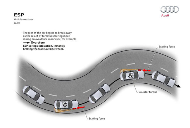 สำหรับระบบควบคุมการทรงตัวมีมาให้ครบทุกฟังค์ชั่นได้แก่ ระบบควบคุมล้อหมุนฟรี (EDL), ควบคุมการทรงตัว (ESP), ควบคุมการลื่นไถล (ASR), ระบบเบรก ABS, ระบบควบคุมการกระจายแรงดันเบรก EBD, ระบบช่วยเบรก BA, ระบบตัดไฟแบตเตอรี่เมื่อเกิดการชน, พวงมาลัยสามารถยุบตัวได้ผ่อนแรงกระแทกผู้ขับขี่, ระบบช่วยออกตัวบนทางลาดชัน, ระบบเบรกมืออัตโนมัติเมื่อหยุดรถโดยไม่ต้องการกดปุ่มเบรกมือ ซึ่งระบบนี้จะเบรกแทนให้โดยอัตโนมัติ และจะปลดออกเมื่อเหยียบคันเร่ง และสุดยอดระบบขับเคลื่อน 4 ล้อ quattro อัจฉริยะ ควบคุมแรงบิดแปรผันตามลักษณะสภาพถนนได้ทั้ง 4 ล้อ เพื่อความสมดุล และการทรงตัวที่ดีกว่าแม้ขับผ่านทางโค้งที่ความเร็วสูง รวมทั้งเมื่อเบรกกะทันหัน ระบบต่างๆ เหล่านี้จะช่วยในเรื่องการทรงตัวของรถให้ควบคุมได้ปลอดภัยมั่นใจยิ่งขึ้น