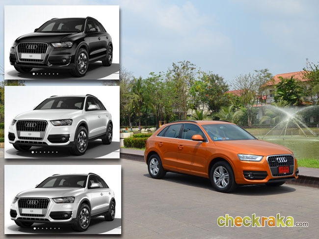 Audi Q3 มีให้เลือก 4 เฉดสีคือ ส้ม, เงิน, เทา และขาว ในราคาเพียง 2,399,000 บาท และรุ่น S-Line ที่เพิ่มอุปกรณ์ความสปอร์ตมากขึ้น อาทิ กระจังหน้าโครเมียม, คิ้วหลังคาโครเมียม, กาบประตู S-Line, ปลายท่อไอเสียโครเมียม, ล้อแม็ก 18 นิ้วแบบ Sport, ปุ่ม Start/Stop, Driver Select โหมด Sport, เบาะหนังกลับแบบ Sport และเครื่องเล่น CD 6 แผ่น เป็นต้น ในราคา 2,990,000 บาท