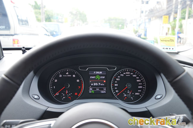 ส่วนในเรื่องความประหยัดที่มีใกล้เคียงกับรถเครื่องยนต์ขนาด 2.0 ลิตร นั้นมาจากระบบดับและสตาร์ตเครื่องยนต์เมื่อรถจอดนิ่งสนิท หรือระบบ Start-stop Engine ที่เป็นฟังก์ชันพิเศษใน Audi Q3 โดยที่ไม่สร้างความรู้สึกรำคาญแต่อย่างใด สามารถติดเครื่องยนต์ได้ในเวลาไม่ถึง 1 วินาที นับจากปล่อยเท้าออกจากแป้นเบรกเพื่อเหยียบคันเร่ง และยังสามารถสั่งยกเลิกการทำงานระบบนี้ได้