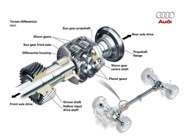 ตัวอย่างระบบส่งกำลังแบบ quattro ของ Audi
