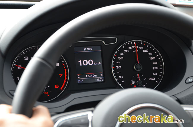 เมื่อเริ่มออกตัวด้วยการกดคันเร่งที่มีน้ำหนักเบามากแต่มีความหนืดนิดๆ ควบคุมง่ายมาก ตัวรถพุ่งไปอย่างนุ่มนวล แทบไม่รู้สึกถึงอาการเปลี่ยนของระบบเกียร์ แต่ได้อัตราเร่งที่ต่อเนื่องมาก ในเวลาไม่นานกับน้ำหนักคันเร่งเบาๆ สามารถทำความเร็วขึ้นไปที่ 100 กม./ชม. ได้สบายๆ และหากเผลอเหยียบคันเร่งต่อเนื่องไปอีก ก็ไปถึงที่ความเร็ว 140 กม./ชม. แบบไม่รู้สึกตัว โดยความเร็วที่ 100 กม./ชม.นั้น ใช้รอบเครื่องยนต์เพียงเกือบๆ 2,000 รอบ/นาที และที่ความเร็ว 120 กม./ชม. ใช้รอบเครื่องยนต์ที่ 2,300-2,400 รอบ/นาที นับว่าไม่สูงเกินไป และในช่วงทางโล่งๆ ความเร็วไหลไปถึง 140 กม./ชม. ที่ 2,600 รอบ/นาที เท่านั้น อัตราเร่งแซงสำหรับ Audi Q3 มีให้ตามเท้าทุกครั้งอย่างไม่ต้องลังเลใจ เพราะเมื่อกดคันเร่งเพิ่มอีกเล็กน้อยเมื่อต้องการแซง เครื่องยนต์ก็สามารถตอบสนองได้ทันที โดยใช้รอบเครื่องยนต์ไม่สูง และไม่มีอาการรอรอบแม้แต่น้อย นับว่าขับสนุกมากๆ แม้ตัวรถจะมีขนาดค่อนข้างใหญ่กว่ารถซีดานหรือรถเก๋งบีเซกเมนต์ทั่วไป แต่ทำอัตราเร่งได้ดีเกินตัวจริงๆ