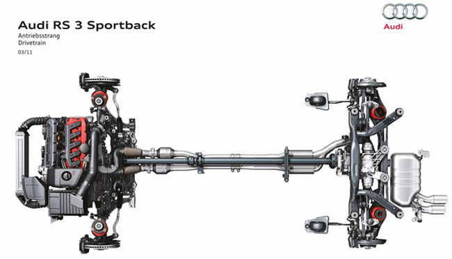 ตัวอย่างระบบส่งกำลังแบบ quattro ของ Audi