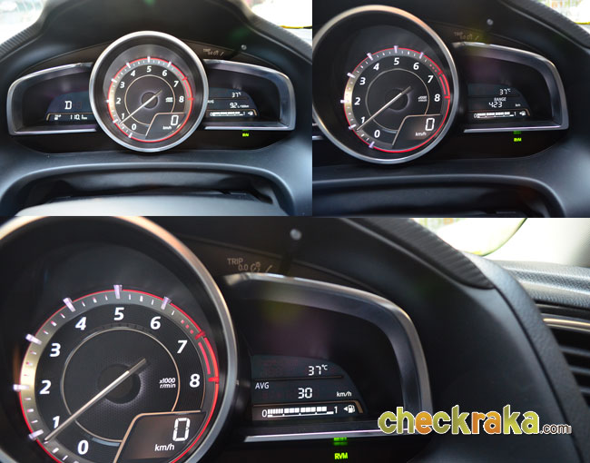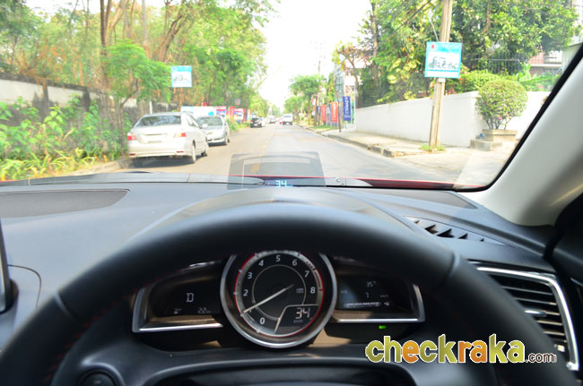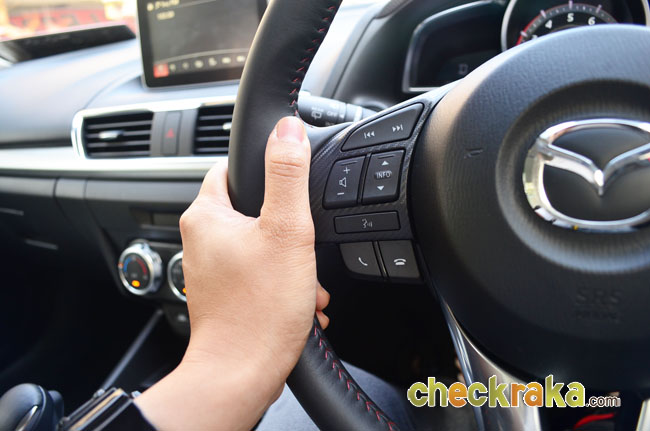 มาสด้า 3 ใหม่ ให้อารมณ์การขับขี่ในสไตล์ยุโรป ด้วยการดีไซน์อุปกรณ์ แผงคอนโซลหน้าและกลาง ตอบสนองผู้ขับได้สะดวกสบาย ตำแหน่งการจับพวงมาลัย การใช้งานปุ่มควบคุมต่างๆ ทั้งบนพวงมาลัยและคอนโซลหน้าใช้ง่าย รวมถึงจอสกรีนใสบอกระดับความเร็ว บอกระบบเนวิเกเตอร์และระบบแจ้งเตือนต่างๆ ได้ ซึ่งจะเปิดขึ้นมาแบบป๊อป-อัพเมื่อสตาร์ตเครื่องและพับเก็บเมื่อดับเครื่องยนต์แบบอัตโนมัติ และยังมีปุ่มควบคุมอัจฉริยะ Center Commander ตรงคอนโซลกลางที่มีลักษณะเป็นปุ่มกลมๆ 2 ปุ่มๆ เล็กควบคุมเสียง-ปุ่มใหญ่ทำหน้าที่เป็นจอยสต๊กโยกได้ทุกทิศทางเพื่อสั่งรายการเมนูบนหน้าจอสัมผัสขนาด 7 นิ้ว ใช้งานง่ายและเพลิดเพลินมาก ส่วนของเมนูก็ไม่ซับซ้อนมากนัก ใช้เวลาเรียนรู้ไม่กี่ชั่วโมงก็สามารถงานได้เกือบครบทุกฟังก์ชัน