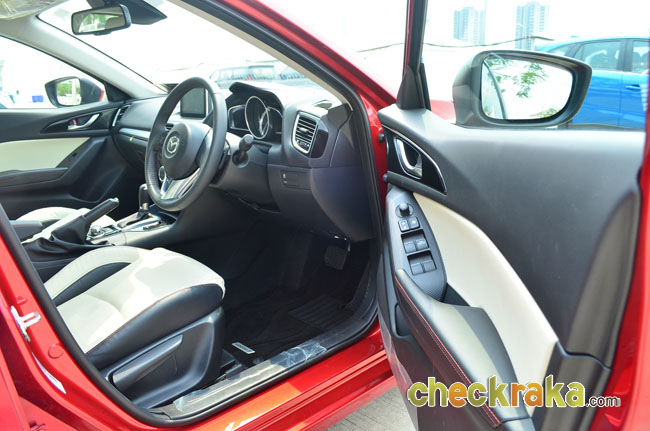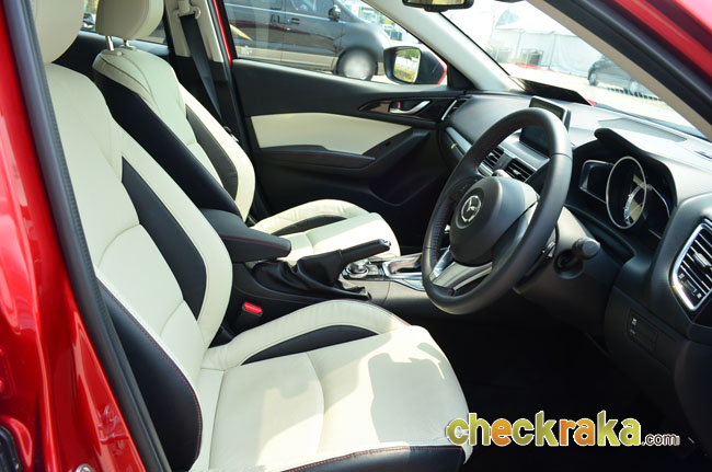 ที่นั่งผู้ขับ/ผู้โดยสาร มาสด้า 3 สกายแอคทีฟ ออกแบบเบาะนั่งคู่หน้า โดยเฉพาะฝั่งคนขับได้อย่างดี ทั้งกระชับ นั่งสบาย และลดอาการปวดเมื่อยได้ดีแม้ขับเป็นระยะทางร้อยกิโลเมตร ระดับของเบาะคนขับสามารถปรับได้ 6 ทิศทาง ทำให้ท่านั่งขับพอดีและอยู่ในระดับที่มองเห็นโดยรอบรถได้ดี และปุ่มควบคุมต่างๆ เมื่อต้องการใช้งานก็ไม่ต้องเอื้อมจนปวดหลัง แม้เข้าโค้งแรงๆ ตัวคนขับก็แทบไม่ต้องเกร็งหลังมากนัก นับว่าได้ความสะดวกสบายในสไตล์สปอร์ตอย่างแท้จริง