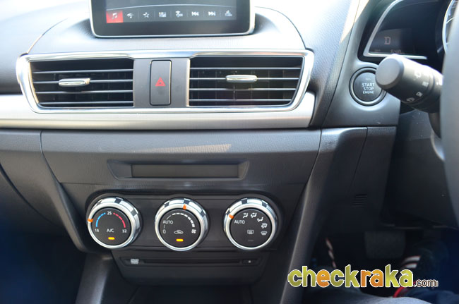 ระบบปรับอากาศ ในมาสด้า 3 ใหม่นับว่าไม่มีอะไรพิเศษมากมายนักมีเพียงระบบที่เป็นอัตโนมัติมาให้ และไม่มีระบบแยกซ้ายขวา ซึ่งอาจไม่เน้นเทคโนโลยีด้านนี้นักเพราะที่จริงแล้วแอร์แบบแยกซ้ายขวานั้นคนไทยไม่ค่อยนิยมมาปรับกันมากนัก และที่สำคัญระบบแอร์ในมาสด้า 3 ใหม่นี้เย็นเหลือเฟือแม้แดดจะแรง และอุณหภูมิภายนอกสูงสุดที่วัดได้บนหน้าปัดถึง 42 องศาก็ตาม