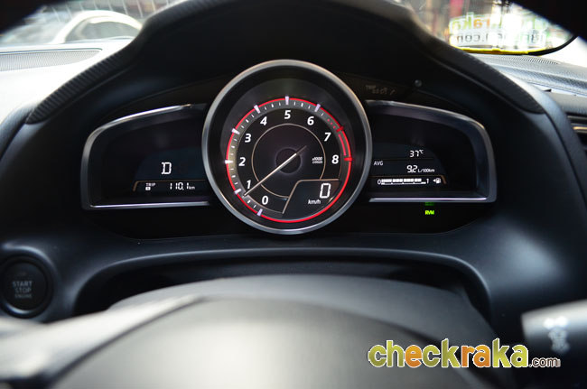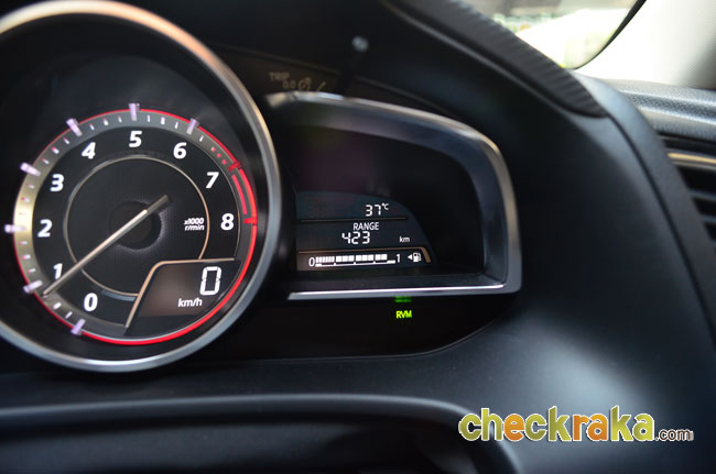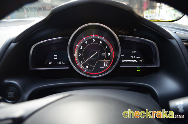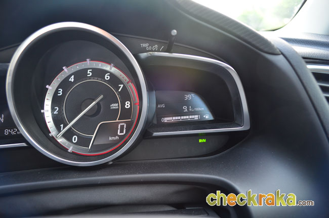 อัตราสิ้นเปลืองมาสด้า 3 สกายแอคทีฟ บนมาตรวัด 9.1 ลิตร/100 กม. หรือ 10.9 กม./ลิตร