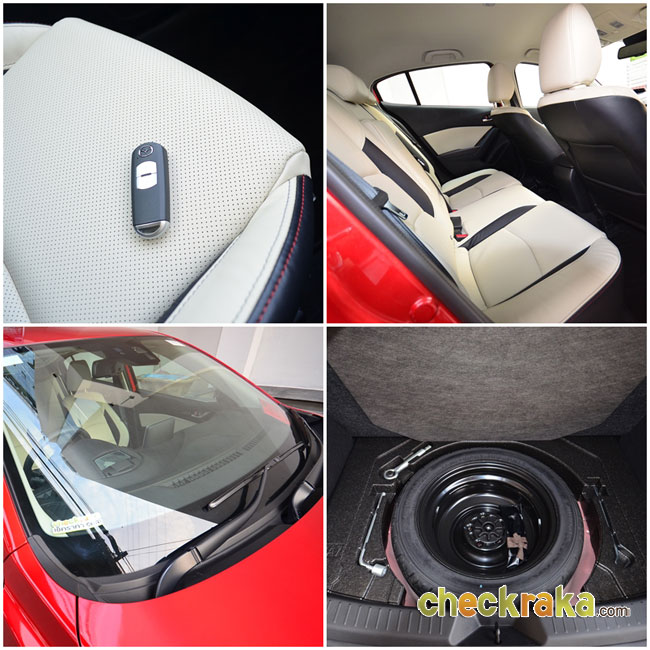 ทีมงาน CheckRaKa.com ได้รับรถมาสด้า 3 สกายแอคทีฟรุ่นใหม่จากบริษัท ไทยยานยนตร์ เซลส์แอนด์เซอร์วิส จำกัด ที่โชว์รูมมาสด้าไทยยานยนตร์ ถนนพระราม 9 โดยรุ่นที่นำมาทดสอบเป็นมาสด้า 3 สกายแอคทีฟ รุ่น 2.0 SP Sports 5 ประตู สีแดงพิเศษ (โซล เรด - Soul Red) ตัวท็อปสุด ซึ่งสิ่งที่แตกต่างที่ชัดเจนคือ เบาะภายในเป็นสีครีม-ดำ ด้ายแดง ราคา 1,094,000 บาท