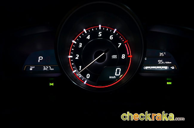 อัตราสิ้นเปลืองมาสด้า 3 สกายแอคทีฟ บนมาตรวัด 9.1 ลิตร/100 กม. หรือ 10.9 กม./ลิตร