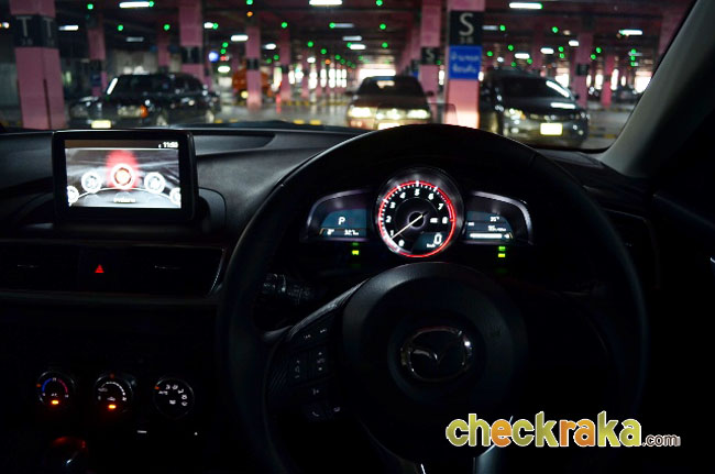 มาสด้า 3 ใหม่ ให้อารมณ์การขับขี่ในสไตล์ยุโรป ด้วยการดีไซน์อุปกรณ์ แผงคอนโซลหน้าและกลาง ตอบสนองผู้ขับได้สะดวกสบาย ตำแหน่งการจับพวงมาลัย การใช้งานปุ่มควบคุมต่างๆ ทั้งบนพวงมาลัยและคอนโซลหน้าใช้ง่าย รวมถึงจอสกรีนใสบอกระดับความเร็ว บอกระบบเนวิเกเตอร์และระบบแจ้งเตือนต่างๆ ได้ ซึ่งจะเปิดขึ้นมาแบบป๊อป-อัพเมื่อสตาร์ตเครื่องและพับเก็บเมื่อดับเครื่องยนต์แบบอัตโนมัติ และยังมีปุ่มควบคุมอัจฉริยะ Center Commander ตรงคอนโซลกลางที่มีลักษณะเป็นปุ่มกลมๆ 2 ปุ่มๆ เล็กควบคุมเสียง-ปุ่มใหญ่ทำหน้าที่เป็นจอยสต๊กโยกได้ทุกทิศทางเพื่อสั่งรายการเมนูบนหน้าจอสัมผัสขนาด 7 นิ้ว ใช้งานง่ายและเพลิดเพลินมาก ส่วนของเมนูก็ไม่ซับซ้อนมากนัก ใช้เวลาเรียนรู้ไม่กี่ชั่วโมงก็สามารถงานได้เกือบครบทุกฟังก์ชัน