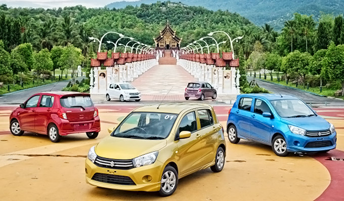 ซูซูกิ เซเลริโอ รถแฮตช์แบ็ก 5 ประตูขนาดกะทัดรัด เครื่องยนต์เล็กเพียง 1.0 ลิตร มีจุดเด่นที่เน้นด้านความประหยัด คล่องตัวเมื่อใช้งานในเมือง และราคาค่าตัวที่ไม่สูงมากนักเมื่อเทียบกับรถระดับเดียวกัน