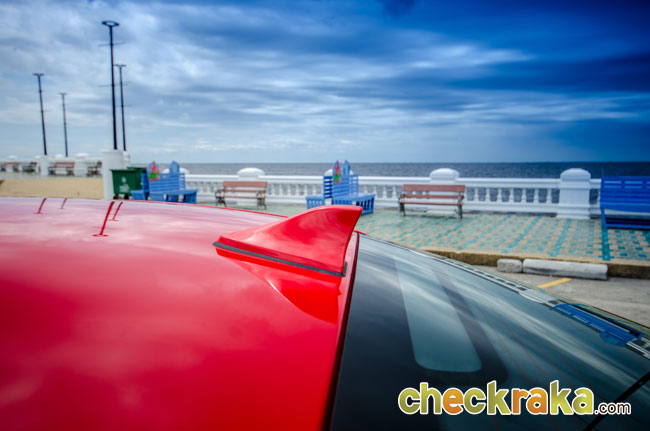 ส่วนท้ายโดดเด่นด้วยโคมไฟแบบ LED ทรงสี่เหลี่ยมที่แบ่งช่องของไฟต่างๆ ได้อย่างสวยงาม เด่นสะดุดตาเมื่อมองระยะไกล ฝากระโปรงท้ายทรงสูงขึ้นรับกับกระจกหลังที่ลาดชันในสไตล์รถสปอร์ตคูเป้ กันชนหลังขนาดใหญ่พร้อมแถบสะท้อนแสงทั้ง 2 ฝั่งเล่นสีสันด้วยดำตัดตรงส่วนกลางพร้อมกับดิฟฟิวเซอร์ที่ด้านล่าง และเว้าขอบชายกันชนล่างด้านขวาเอาไว้ให้โชว์ปลายท่อสแตนเลส ล้อแม็กขนาด 17 นิ้ว สีน้ำตาลเข้มพร้อมสุดยอดยางดีอันดับ 1 Brigdestone Potenza adrenalin re002 ขนาด 215/45/R17