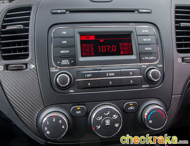 เครื่องเสียงของเซอราโต้ คูปนับว่ามีเพียงพอที่ใช้พังเพลงและเชื่อมต่อ AUX,USB เล่น CD/MP3/FM/AM พร้อมลำโพง 6 จุด เสียงแน่นใสครบทุกย่านมากๆ (ทดลองฟังมาเรียบร้อยครับ) แต่น่าเสียดายที่ไม่มีระบบเนวิเกเตอร์ ระบบเชื่อมต่อโทรศัพท์ กล้องมองหลัง หรือจอสัมผัสมาให้ และระบบปรับอากาศอัตโนมัติถูกตัดออกเหลือเพียงระบบ Manual ควบคุมด้วย "มือหมุน" 3 ปุ่มกลมๆ แต่ก็ใช้งานง่ายดีไม่ยุ่งยากครับ