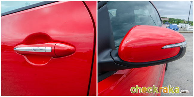 กระจกมองข้างมองเห็นชัดเจนด้วยเลนส์โค้งทำให้ดูรถได้ตั้งแต่ระยะใกล้ แต่ก็มีคำเตือนว่าควรมองดีๆ ก่อนนะครับว่า "วัตถุอาจใกล้กว่าที่เห็นโปรดระมัดระวัง" ซึ่งทรงของกระจกมองข้างดูอย่างไรก็เหมือนรถยุโรปบางครั้งคิดว่า "เรากำลังขับ Audi อยู่รึเปล่า"