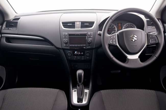 มุมมองของสวิฟท์ในตำแหน่งผู้ขับนับว่าดีมาก เนื่องจากกระจกบานหน้ากว้าง และตั้งชันไม่หลอกตา ในส่วนเสา "A" ทั้ง 2 ฝั่งมีขนาดเล็กไม่บดบังมุมมองข้างๆ ขณะเลี้ยว กระจกมองข้างขนาดใหญ่มากจึงทำให้มองง่ายขึ้น กระจกมองหลังจะเห็นกระจกหลังครบทุกมุมมอง แม้กระจกหลังจะมีขนาดเล็กแบนๆ แต่มีความกว้างจึงทำให้มองได้ชัดเจน