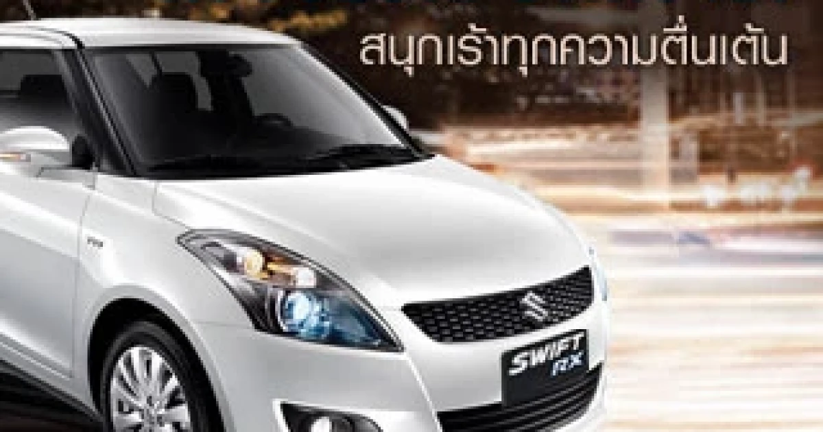 ซูซูกิ สวิฟต์ อาร์เอ็กซ์ - Suzuki Swift RX ปรับโฉมใหม่ ไฟโปรเจ็คเตอร์ไบ-ซีนอน ปรับระดับอัตโนมัติ ไฟท้ายลายใหม่ ติดตั้งสปอยเลอร์หลังขนาดใหญ่ทรงหนาขึ้น อุปกรณ์อำนวยความสะดวกเต็มคันทั้ง Cruise control, paddle shift ยกระดับเป็น "Premium Eco Car" เหนือกว่าคู่แข่ง เครื่องยนต์ 1.25 ลิตร และเกียร์ CVT 7 จังหวะ เร้าใจมากขึ้น ราคาโดนใจเพียง 599,000 บาท