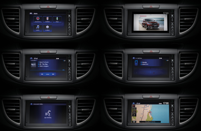 อุปกรณ์เพื่อความบันเทิงครบทั้งจอสัมผัส 7 นิ้ว พร้อมเนวิเกเตอร์, เชื่อมต่อได้หลากหลายและสั่งงานด้วยฟังก์ชัน "SIRI" (iPhone 4S ขึ้นไป) ช่อง HDMI (เฉพาะรุ่น) และ USB ไม่เพียงแค่นั้นซีอาร์-วี ใหม่ให้มุมมองที่เหนือใครด้วยกล้องมองข้างซ้ายรถเมื่อเปิดไฟเลี้ยว และกล้องมองขณะถอยหลังปรับมุมมองได้ 3 ระดับ แสดงภาพบนจอเพื่อความปลอดภัย (คล้ายกับใน ฮอนด้า แอคคอร์ด ใหม่) และระบบปรับอากาศแบบอัตโนมัติแยกซ้าย-ขวาพร้อมช่องแอร์หลัง
