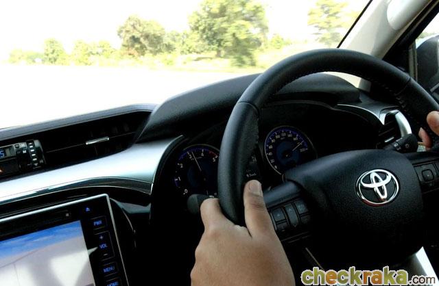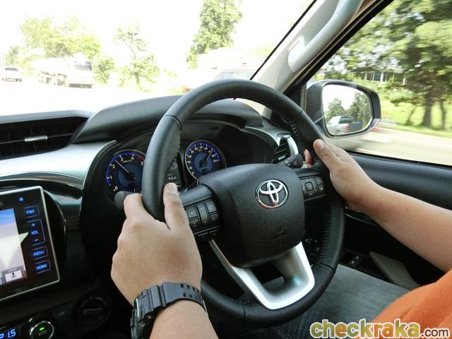 ช่วงทดสอบนี้ทีมงานเช็คราคา.คอม/CarGuRuThailand ได้ขับโตโยต้า ไฮลักซ์ รีโว่ ดับเบิ้ลแค็บ 4X4 เกียร์อัตโนมัติ เพื่อทดสอบใช้งานจริงบนถนนกันบ้าง สิ่งแรกที่สัมผัสได้คือ ความนุ่มของระบบช่วงล่างที่ปรับปรุงใหม่ได้ดีขึ้นกว่ารุ่นเดิมมาก การเกาะถนนที่ดีแม้ความเร็วสูงๆ และเก็บอาการกระเด้งของส่วนท้ายได้ดีขึ้น แม้จะขับผ่านทางลูกรังหรือผิวถนนที่ไม่เรียบ การเก็บเสียงจากภายนอกยิ่งน่าประทับใจแม้ที่ความเร็ว 160 กม./ชม. เสียงจากเครื่องยนต์พอได้ยินเบาๆ ตามความเร็วรอบสูง การควบคุมพวงมาลัยที่ความเร็วมีความหนืดนิดๆ มั่นใจทุกโค้ง