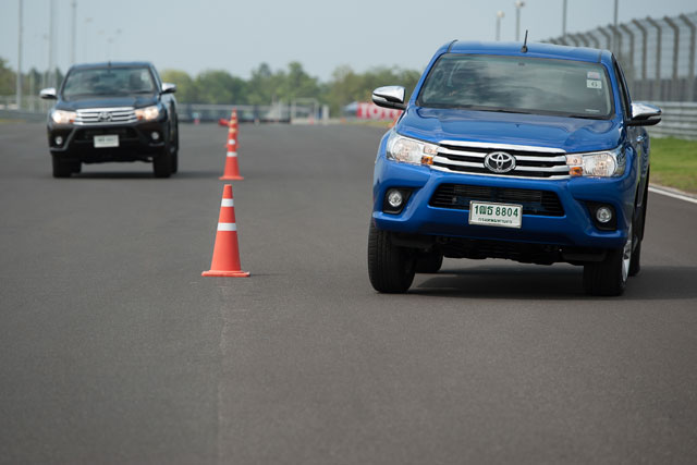 หลังจากนั้นเป็นการขับขึ้นเนินเอียงข้างทั้งซ้าย-ขวา เพื่อพิสูจน์การทรงตัว ซึ่งรีโว่ก็ผ่านไปได้แบบชิวๆ ทั้งรุ่นเกียร์อัตโนมัติและธรรมดาครับ
