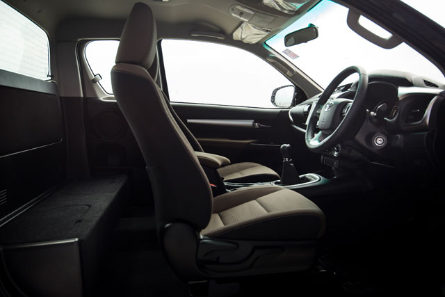 โตโยต้า ไฮลักซ์ รีโว่ สมาร์ทแค็บใหม่ นอกจาประตูแค็บเปิดได้กว้างขวางแล้ว ยังออกแบบพื้นที่การใช้สอยได้อย่างลงตัวและคุ้มค่า ทั้งช่องวางสิ่งของต่างๆ ที่วางแก้วน้ำ เบาะนั่งคนขับที่ปรับขึ้นลงได้ แอร์อัตโนมัติใช้งานง่ายมาก ก็แค่ตั้ง AUTO เอาไว้และปล่อยให้ระบบจัดเอง ที่เท้าแขนพร้อมกล่องใส่ของ พวงมาลัยมัลติฟังก์ชัน ช่องเก็บของรักษาความเย็น และระบบความบันเทิงที่สะดวกสบายราวกับรุ่นคัมรี่ นี่ไม่ใช่แค่กระบะมีแค็บเอาไว้ขนของ! แต่มันเป็นรถครอบครัวระดับหรูหราได้สบายๆ ครับ