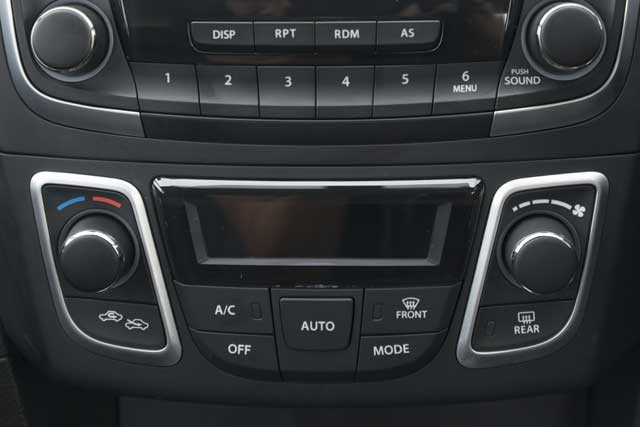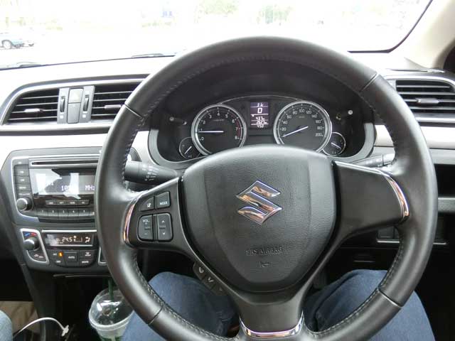 ซูซูกิ เซียส ให้ความสะดวกสบายตั้งแต่ปุ่มสตาร์ต/สต๊อปเครื่องยนต์ แผงคอนโซลหน้าที่ติดตั้งปุ่มใช้งานต่างๆ ที่ง่ายมองเห็นชัดเจน ปุ่มเครื่องเสียงที่ตัวหน้าปัดเองก็ทำงานฉับไว และปุ่มควบคุมบนพวงมาลัยใช้สะดวกเพียงปลายนิ้วกดเบาๆ สำหรับปุ่มควบคุมบลูทูธและรับ-วางสายโทรศัพท์นั้น อยู่ต่ำลงมาอาจดูยาก แต่เมื่อใช้งานสักระยะหนึ่งก็จะคุ้นเคย (ถ้าย้ายมาอยู่ที่วางฝั่งขวาของพวงมาลัยจะดีมากๆ )