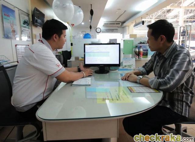 เมื่อเลี้ยวเข้าตัวโชว์รูม จะมีพนักงานรักษาความปลอดภัยเป็นผู้ทักทายและสอบถามข้อมูลเพื่อเข้ารับบริการ หลังจากนั้นนำรถไปจอด ณ จุดรับรถเบื้องต้น พร้อมเชิญเราเข้าไปบริเวณส่วนให้ข้อมูล ทำประวัติและแจ้งรายละเอียดการดำเนินการทั้งหมด รวมถึงการแจ้งราคาและเวลานัดหมายรับรถ จบ! ที่เหลือก็นั่งรอภายในห้องพักผ่อนอย่างสะดวกสบาย