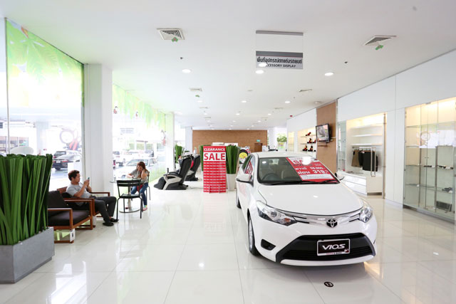 พื้นที่จัดแสดงรถยนต์ใหม่มีให้ลูกค้าสัมผัสครบทุกรุ่น พร้อมรถยนต์ทดลองขับด้านหน้าโชว์รูม