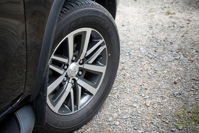 ฟอร์จูนเนอร์ ใหม่ ใช้ยางขนาด 265/60 กับล้ออัลลอยขนาด 18 นิ้ว แต่ก็นั่งสบายไปตลอดทาง แตกต่างจากพีพีวีทั่วไป