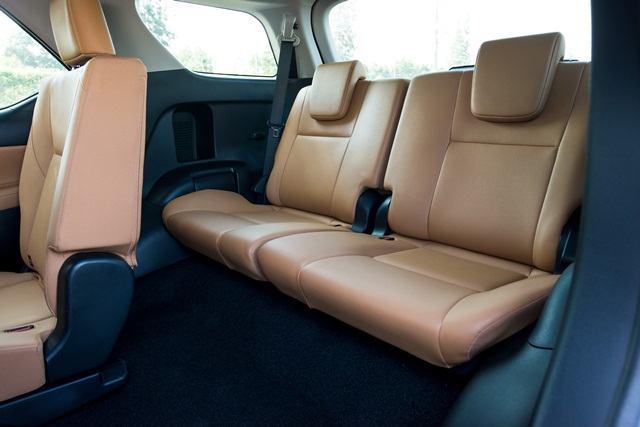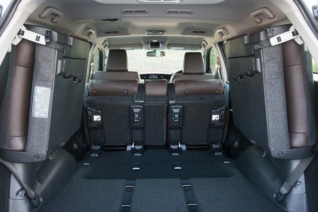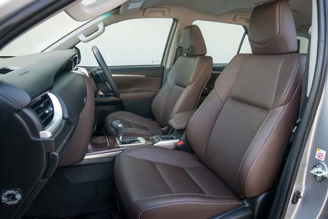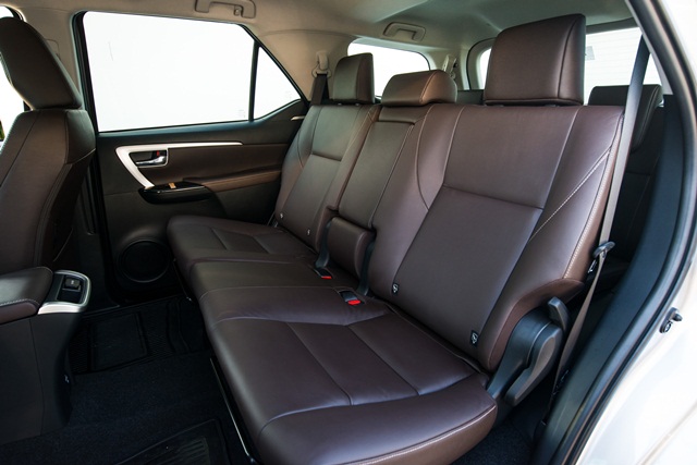 รุ่นท็อป 2.8V ขับเคลื่อน 4 ล้อ หรูหรากว่าด้วยเบาะหนังสีครีมชามัวส์ ส่วนรุ่นอื่นๆ เป็นเบาะหนังสีน้ำตาล รูปแบบเบาะยังคงเป็น 2+3+2 ด้านเบาะแถว 3 คงการพับแบบยกเบาะขึ้นเก็บด้านข้าง หลายคนมองว่าถ้าปรับเป็นพับราบลงไปด้านหน้าจะใช้งานได้สะดวกกว่า จุดนี้โตโยต้าบอกว่า การพับแบบเก็บด้านข้างทำให้ออกแบบเบาะได้แข็งแรงกว่า เพราะไม่ต้องลดขนาดพนักพิงให้บางลง จุดนี้นับเป็นความต่างจากเอสยูวียี่ห้ออื่น แต่ทั้งนี้ขึ้นอยู่กับความชอบและเคยชินของผู้ใช้มากกว่า