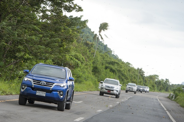 บางช่วงขบวนทดสอบเจอฝนกระหน่ำ และโปรยปรายจนถึงภูเก็ต แต่ ฟอร์จูนเนอร์ ใหม่ สามารถทำความเร็ว