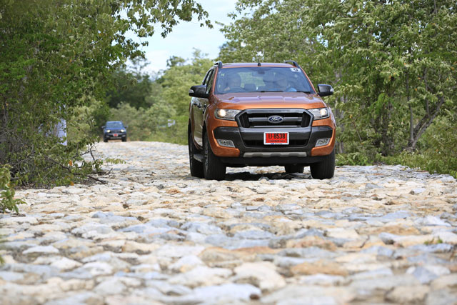 ในช่วงนี้ในขับฟอร์ด เรนเจอร์ใหม่ ลุยเข้าถนนที่ไม่ใช่ถนน! ซึ่งผิวทางมีแต่ก้อนหินขนาดใหญ่พอควร เพื่อให้ทดสอบความแกร่งของช่วงล่าง โดยใช้โหมดการขับแบบ 4L และแทบไม่ต้องเพิ่มแรงที่คันเร่งเลย รถสามารถไหลไปได้เรื่อยๆ ด้วย "Walker Speed" และค่อยๆ ลองเพิ่มความเร็วขึ้นไปอีกเล็กน้อย พบว่า กระเทือนน้อยลงกว่าช่วงที่ขับช้าๆ และรับรู้ถึงการซับแรงกระแทกของช่วงล่างที่ดี