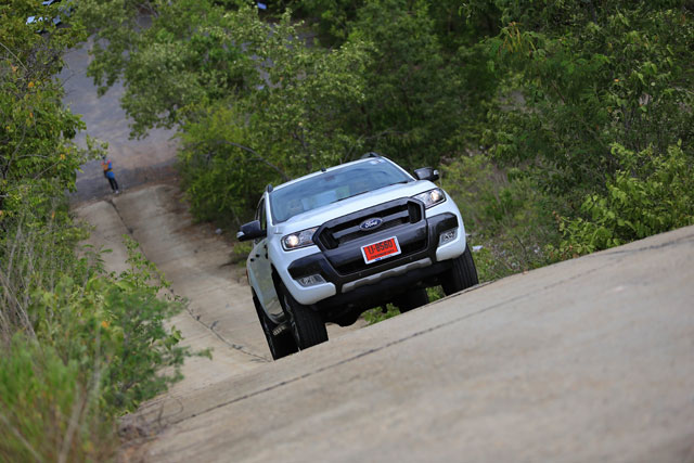 ต่อเนื่องด้วยเนินลูกระนาดขนาดใหญ่มาก โดยใช้โหมด 4L และใช้เพียงการเดินคันเร่งแผ่วๆ เท่านั้น ฟอร์ดเรนเจอร์ก็สามารถผ่านไปได้อย่างนุ่มนวล