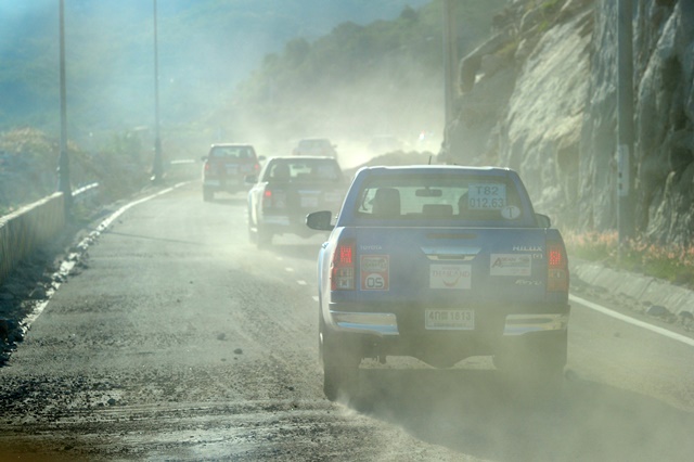 การควบรีโว่ท่ามกลางเส้นทางออฟโร้ด เต็มไปด้วยหลุมบ่อ ฝุ่นตลบ นับเป็นการพิสูจน์ความแข็งแกร่งได้ดี