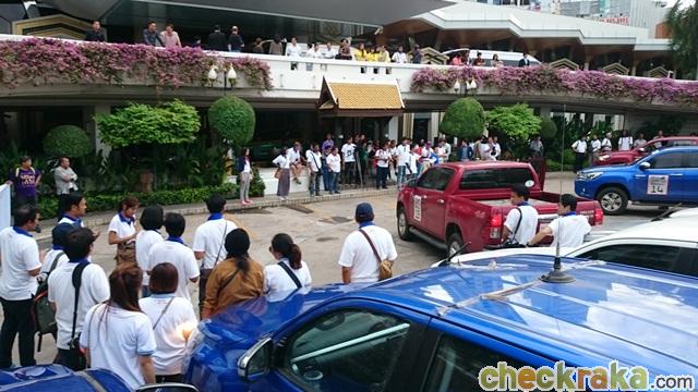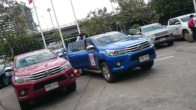 ขบวนคาราวาน โตโยต้า ไฮลักซ์ รีโว่ เตรียมพร้อมกัน ณ ศาลาว่าการกรุงเทพมหานคร เพื่อเริ่มต้นเดินทางกันตั้งแต่เช้าตรู่ มุ่งสู่จังหวัดบุรีรัมย์ ใช้เส้นทางผ่านจังหวัดฉะเชิงเทรา โดยมีเป้าหมายที่ปราสาทหินพนมรุ้ง นับเป็นการเริ่มต้นด้วยระยะทางไกลมากที่สุดถึง 544 กม. ทีมงานเช็คราคา.คอม ร่วมขับกับ 2 สื่อมวลชนสายรถยนต์สลับมือขับตามความเหมาะสม