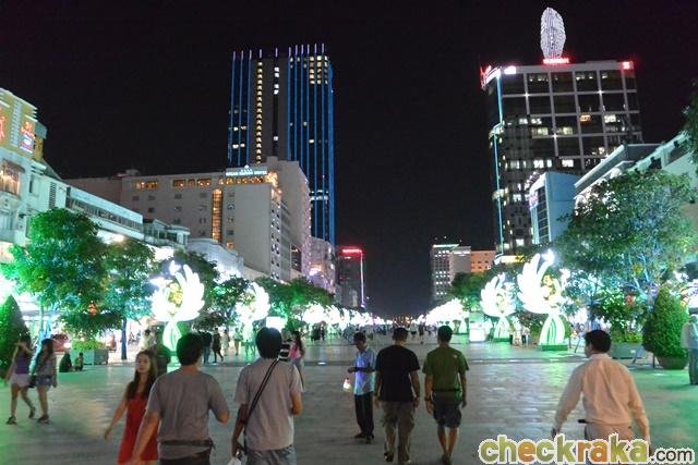 ถนนคนเดินจากหน้าโรงแรม REX ที่พักมีอนุสาวรีย์ลุงโฮเป็นจุดเริ่มต้น ก่อนเดินชมไฟประดับสองข้างทาง