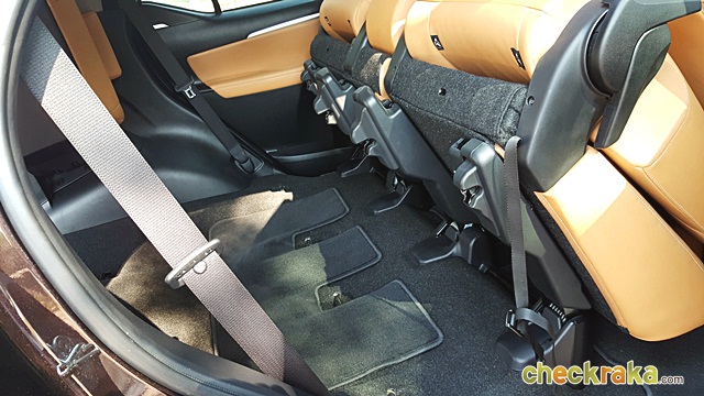 เบาะหนังสีน้ำตาลเข้ม รูปแบบเบาะแบบ 2+3+2 เบาะแถว 2 เลื่อนเข้า-ออก ปรับพนักพิงได้ และยังพับเก็บจังหวะเดียวเพื่อให้เข้า-ออกเบาะแถว 3 ได้อย่างสะดวก เบาะแถว 3 พับแบบยกเบาะขึ้นเก็บด้านข้างเพิ่มพื้นที่ได้อีกมาก