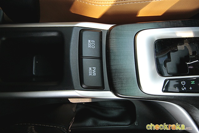 คอนโซลกลางตกแต่งลายไม่สีเข้ม ครอบฐานเกียร์ใช้วัสดุโครเมียมและคันเกียร์แบบขั้นบันไดและสามารถโยกมาทางขวาเพื่อเปลี่ยนระบบเป็นโหมดสปอร์ตเปลี่ยนจังหวะเกียร์ได้เอง ถัดลงมาเป็นสวิตช์เลือกโหมดการขับขี่ Eco Mode และ PWR Mode (Power) ช่องเล็กวางของกระจุกกระจิกและกล่องใส่ของพร้อมที่เท้าแขน