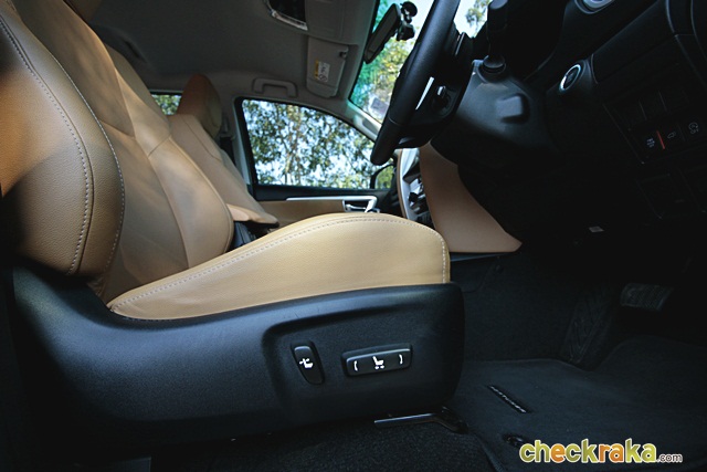 สัมผัสแรกที่ได้ขับต้องบอกว่าเบาะค่อนข้างใหญ่ แม้ผู้ขับจะตัวใหญ่แต่ก็ยังเหลือพื้นที่ส่วนปีกของที่พิงหลังเยอะ ทำให้ไม่อึดอัด วัสดุเบาะมีความแข็ง แน่นๆ เมื่อนั่งไปสักระยะจะเริ่มสบายตัวมากขึ้น พวงมาลัยจับได้ถนัดมือ และปุ่มควบคุมต่างๆ สามารถใช้งานได้สะดวกเพียงปลายนิ้วโป้ง