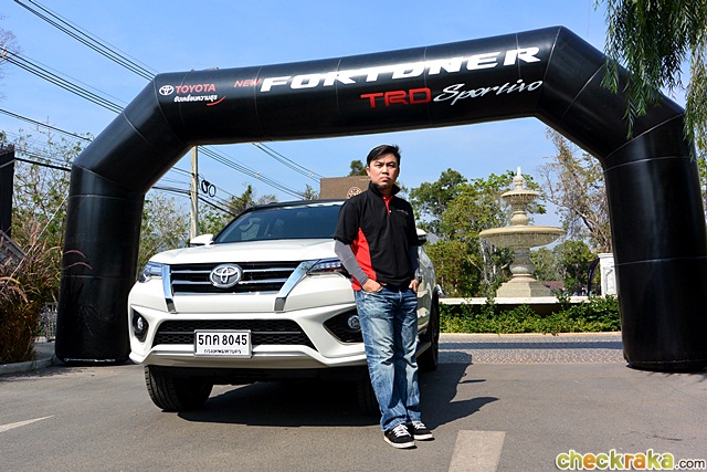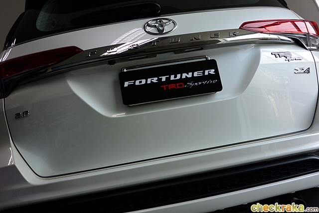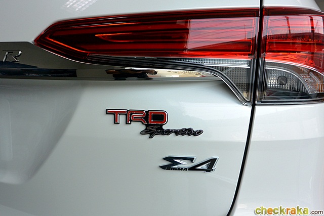 ฟอร์จูนเนอร์ TRD ปรับโฉมใหม่แบบไมเนอร์เชนจ์ ให้ความโดดเด่นกว่ารุ่นปกติอย่างชัดเจน ดูสปอร์ตเข้มมากขึ้น ถ้าเป็นสีขาว สามารถเลือกหลังคาหุ้มฟิล์มสติ๊กเกอร์สีดำตัดให้ความดุดันยิ่งขึ้น ส่วนตัวรถรุ่น TRD มีให้เลือกเพียง 2 สี ดำ และขาว รายละเอียดภายนอกชัดเจนด้วยชุดแต่งเสริมรอบคัน แต่ที่โดดเด่นสุดๆ ผู้เขียนว่าเป็นล้ออัลลอย 20 นิ้ว ดีไซน์ 6 ก้าน คล้ายสายฟ้า โทนสีเข้ม ซึ่งถ้าเลือกรถสีขาวดูตัดกันดีมาก และเด่นกว่าสีดำ ด้านหลังมีโลโก้ TRD Sportivo ติดที่ฝาท้ายบ่งบอกชัดถึงความพิเศษ
