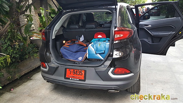 ส่วนเบาะหลังนั้นระดับที่นั่งต่ำเสมอกับเบาะหน้าทำให้ต้องคอยชะเง้อคอดูทางจึงจะมองเห็น แต่ก็ชดเชยด้วยความนุ่มสบายและพนักพิงที่เองได้ถึง 14 องศา เป็นมุมที่พร้อมนอนพักขณะเดินทางได้อย่างดี ส่วนห้องสัมภาระท้ายก็นับว่ามีพื้นที่มากพอสมควรและมีจุดเสียบไฟ 12 V มาให้เพื่อความสะดวก