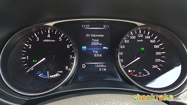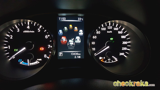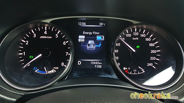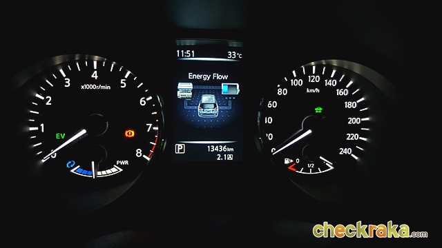 ในขณะเดียวกันหากมีไฟในระบบเกินครึ่งก็สามารถขับด้วยโหมด EV ด้วยมอเตอร์ไฟฟ้าล้วนๆได้ที่ความต่ำๆ จนกว่าระดับไฟในแบตฯ ถึงจุดหรือเติมคันเร่งมากขึ้น นี้คือสิ่งที่ช่วยให้เอ็กซ์เทรลไฮบริดประหยัดน้ำมันได้มากขึ้นอีกระดับนั่นเอง