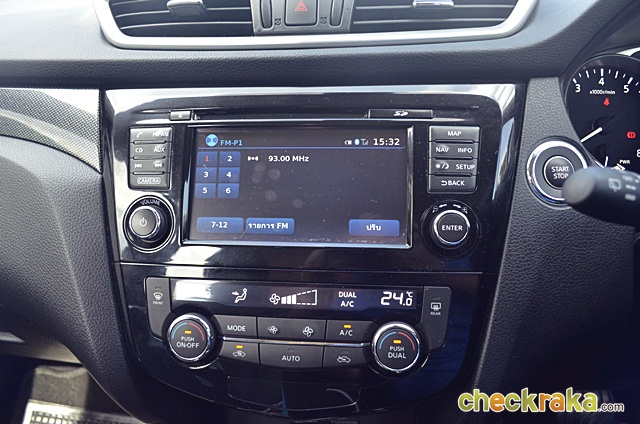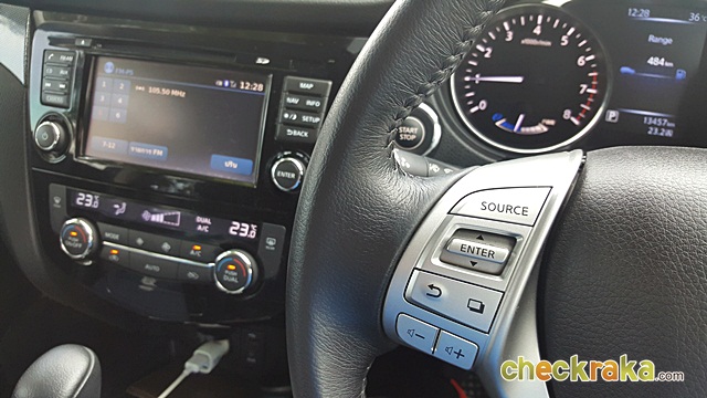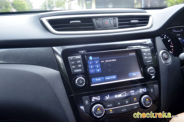 เครื่องเสียงจอสัมผัสขนาด 7 นิ้ว รองรับ MP3/CD/DVD/USB/AUX เชื่อมต่อ Bluetooth, internet, พร้อมระบบนำทาง และ Nissan connect ให้ภาพละเอียดคมชัดเมื่อปรับเป็นจอแสดงภาพขณะถอยหลัง ถัดลงมาเป็นชุดควบคุมแอร์อัตโนมัติแยกปรับอุณหภูมิซ้าย-ขวา พร้อมช่องแอร์เป่าผู้โดยสารตอนหลัง