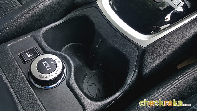 ตรงคอนโซลกลางติดตั้งสวิตช์ปรับโหมดการขับเคลื่อนทั้ง 2WD, AUTO และ LOCK รวมถึงปุ่มสั่งเปิด-ปิดระบบช่วยลงทางชัน แถมด้วยช่องวางแก้วน้ำแบบมีลมแอร์เป่าเย็นฉ่ำ