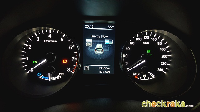 ในขณะเดียวกันหากมีไฟในระบบเกินครึ่งก็สามารถขับด้วยโหมด EV ด้วยมอเตอร์ไฟฟ้าล้วนๆได้ที่ความต่ำๆ จนกว่าระดับไฟในแบตฯ ถึงจุดหรือเติมคันเร่งมากขึ้น นี้คือสิ่งที่ช่วยให้เอ็กซ์เทรลไฮบริดประหยัดน้ำมันได้มากขึ้นอีกระดับนั่นเอง